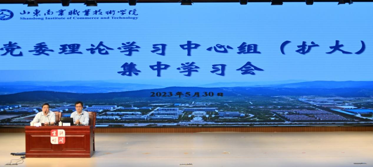 山東商院黨委理論學(xué)習(xí)中心組成員參加學(xué)習(xí)會(huì),學(xué)校中層正職領(lǐng)導(dǎo)干部、各黨總支副書(shū)記、宣傳委員、統(tǒng)戰(zhàn)委員、全體專兼職輔導(dǎo)員及安保一線隊(duì)伍列席。
