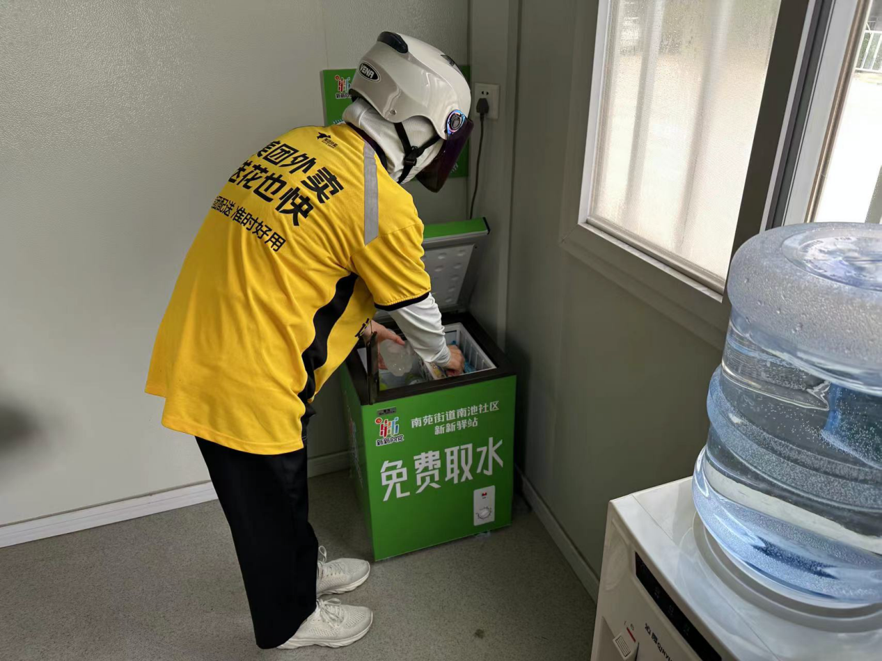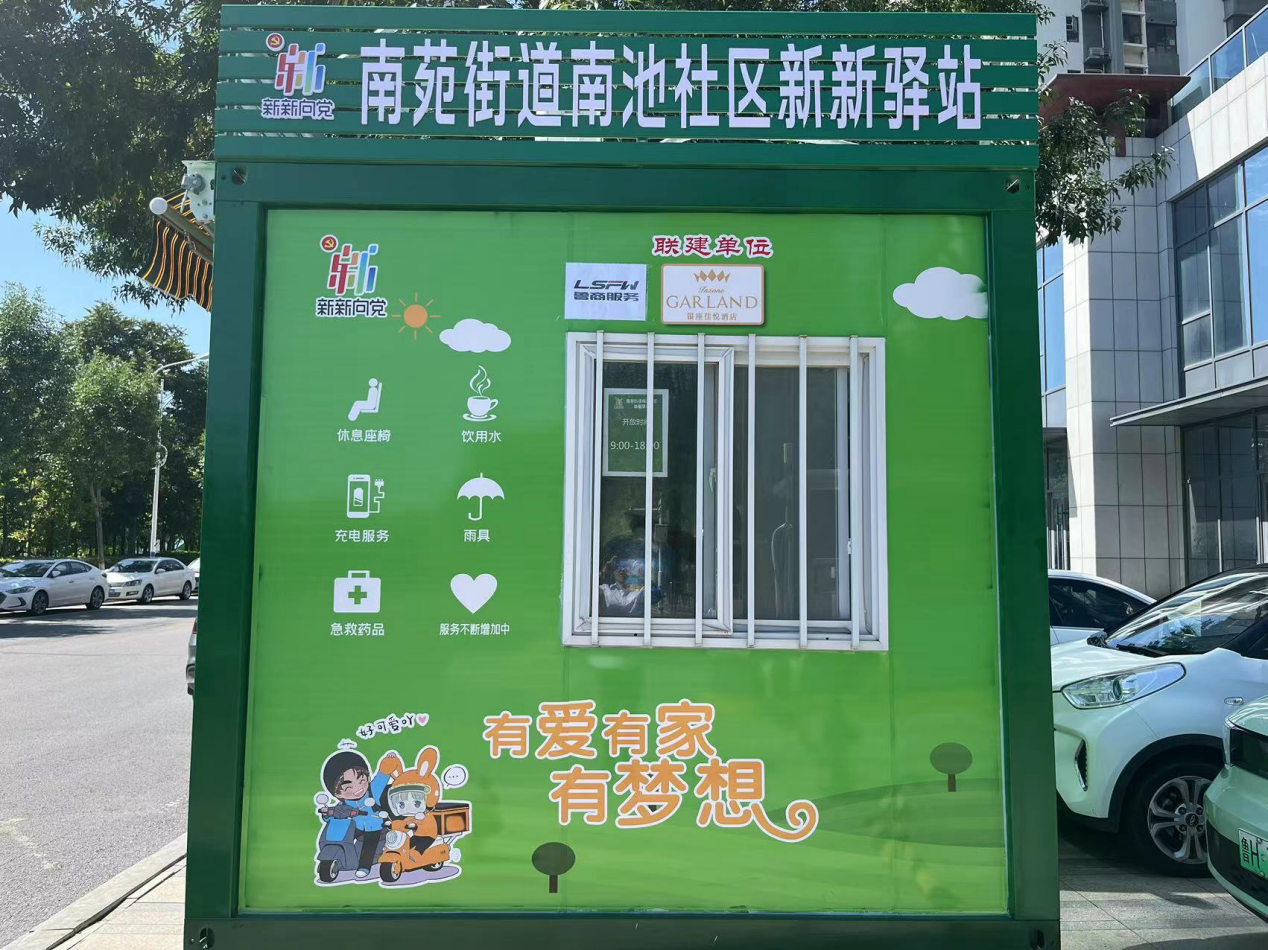 “新新驛站”是將閑置的核酸采樣亭進(jìn)行煥新改造,內(nèi)設(shè)空調(diào)、冰箱、飲水機(jī)、座椅、充電器、雨傘、急救藥品箱、打氣筒、花露水、血壓計(jì)等便民設(shè)施及物品,為小區(qū)業(yè)主、快遞員、出租車司機(jī)、環(huán)衛(wèi)工人及外賣員提供便利服務(wù)和休息場(chǎng)所。